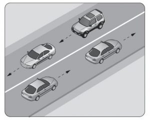 Orta refüj vardır: Karşı yönler fiziksel olarak ayrılmıştır.